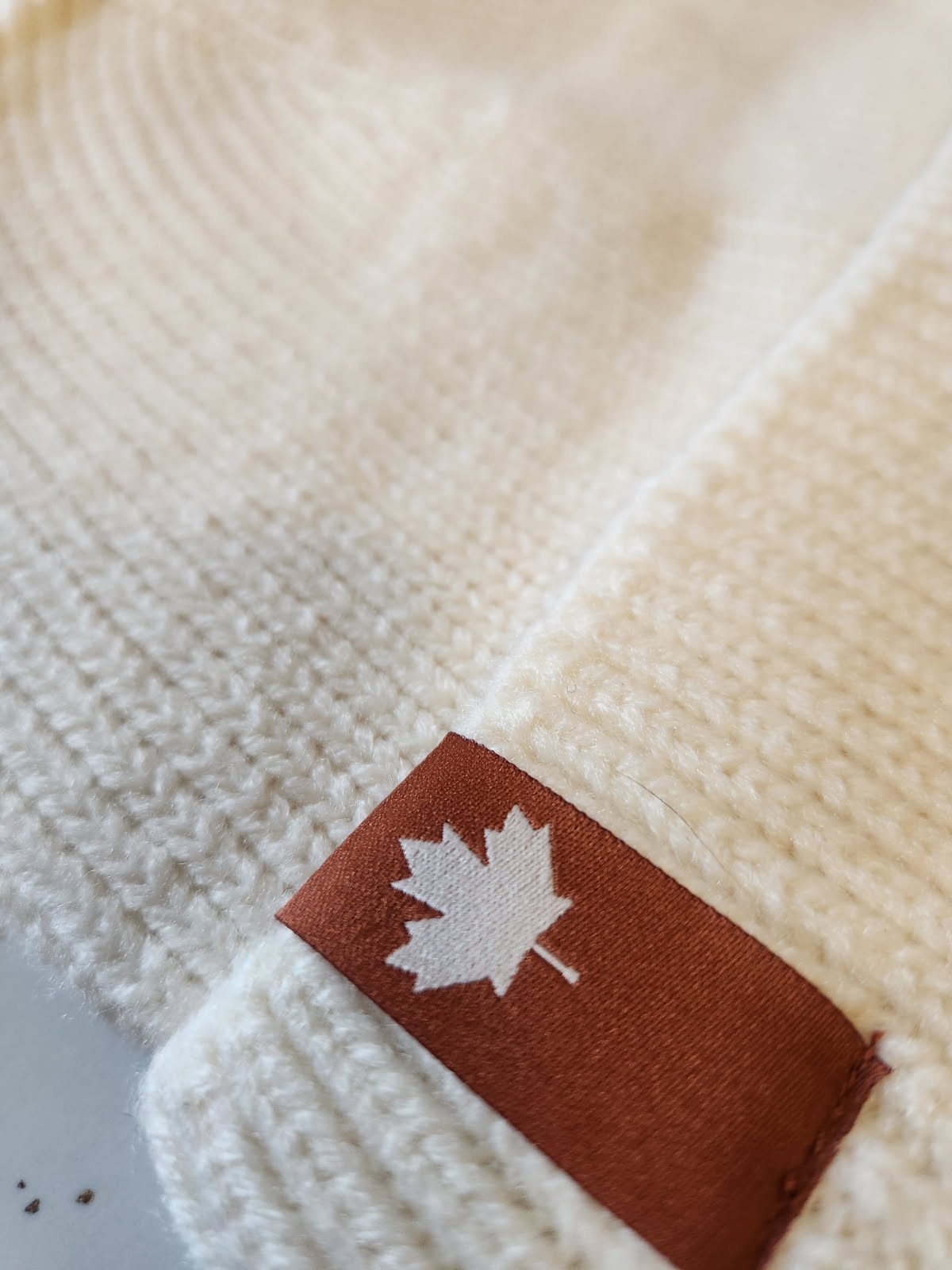 Our new toque of the year is a fan favourite! Featuring a maple leaf design, a chunky knit, and a cozy Winter White colour, it’s a symbol of hope and warmth in more ways than one. One size fits most.